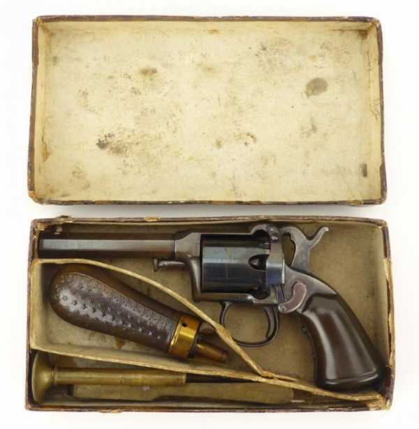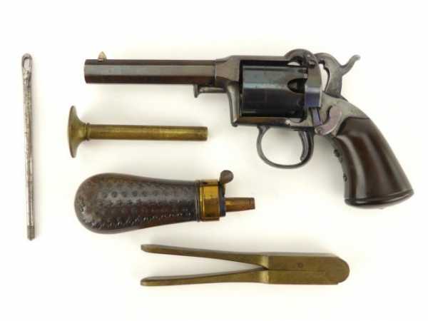 Барабан устанавливается на оси и легко извлекается из револьвера для снаряжения. Оружие рассчитано на стрельбу круглыми пулями 0.31 калибра (7.9 мм), и комплектуется специальной пулелейкой.