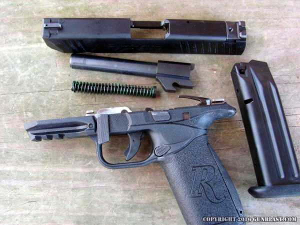Основой для пистолета стала система автоматики с использованием энергии отдачи при коротком ходе ствола оружия, здесь конструкторы компании Remington ничего не поменяли. А вот возвратные пружины поставили другие, полностью аналогичные по своим метрическим параметрам пружинам предшественника, но выдерживающие более 2,5 тысяч выстрелов. Как оказалось, при желании можно это сделать, а менять возвратные пружины после одного похода в тир это совсем не норма.