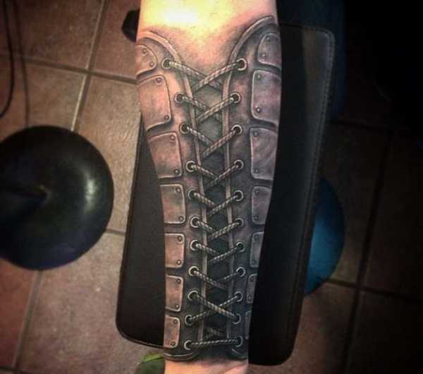 Иногда в качестве татуировки мужчины выбирают не облик гладиатора, а некоторые элементы, например, латы или шлем. Нательный рисунок в качестве доспехов в основном присущий мужественным и суровым людям, которые имеют отношение к боевым искусствам либо обладают умением пользоваться оружием.
