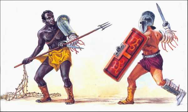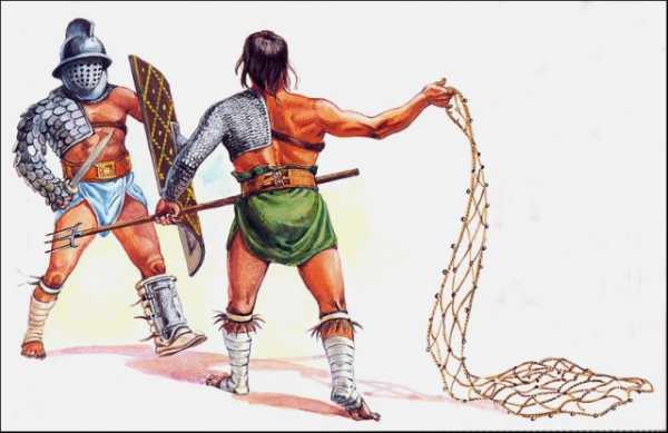 Вот сражающиеся секутор и ретиариус в классическом вооружении.