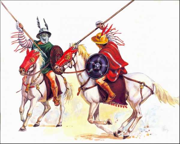 К равным парам относятся экиты ( наездники), поединком которых обычно открывались бои. У них были шлемы с забралом , маленький, плоский, круглый щит, копье и меч. Они были одеты в тунику.