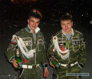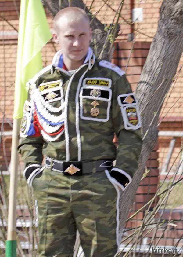 7.12.2016, Svetlay, Чисто русские фото В прошлый раз, когда я выпустила подборку про швейные войска, тридцать процентов комментариев были связаны с тем, что такой фигнёй страдают в основном нерусские и деревенские дембеля, а ещё вы писали, что все эти фото были сделаны очень давно, и сейчас такого уже нет. А вот и неправда! Дембельская мода затронула всех без исключения — это раз. А во вторых, я вам скажу, что эта армейская проблема (по-другому я не могу это назвать) никуда не исчезла. Более того, в интернете появилось множество сайтов, на которых можно заказать себе дембельскую форму. Ценник на парадную форму дембеля колеблется в пределах 8-ми тысяч. Я, конечно, не буду писать названия этих сайтов, но в конце подборке вы увидите, что они предлагают. А теперь сами смотрите фото русских дембелей и делайте выводы.