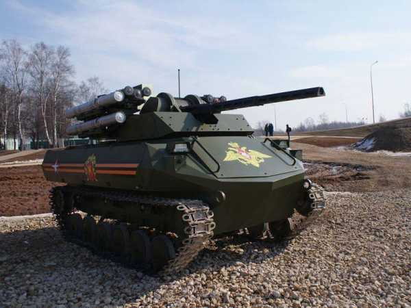 В России создано уже несколько образцов боевых роботов. Самым крупным сухопутным боевым аппаратом является разведывательно-ударный комплекс «Вихрь», разработанный на базе БМП-3. Машина весом 15 тонн вооружена 30-миллиметровой автоматической пушкой 2А72, а также 7,62-миллиметровым пулемётом ПКТМ и противотанковым ракетным комплексом «Корнет-М».