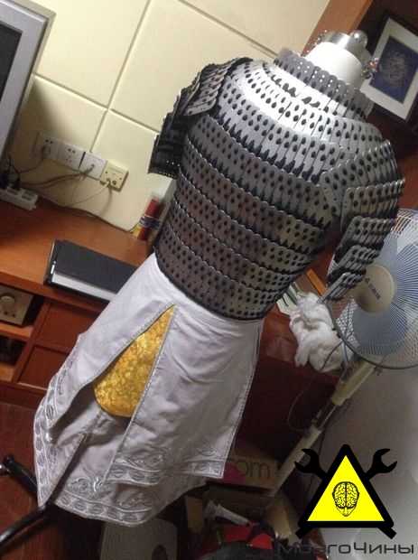 После исследования боевых доспехов стран Азии, была разработана стальная пластина с 13 отверстиями, которая станет основным элементом всего костюма.