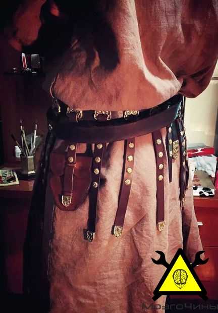 Изготовим кожаную подкладку для плечевой части брони. Благодаря ей вес доспеха будет распределяться равномерно. Это сделает его более стабильным и удобным при ношении.