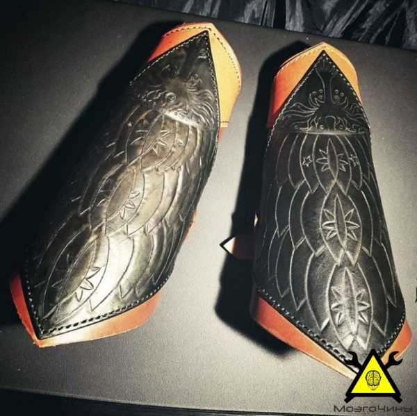 Нарукавники были сделаны из натуральной кожи. На них был нанесён рисунок, а затем поверхность покрашена черной краской.