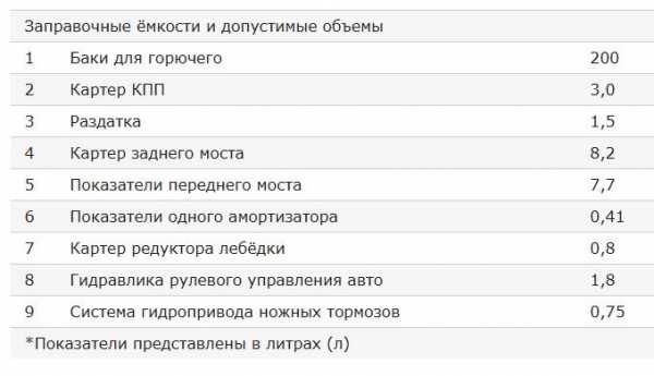 Сравнительная таблица расхода топлива автомобилей ГАЗ различных модификаций
