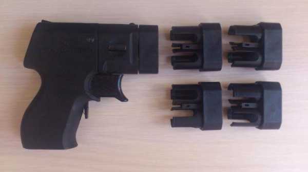 В плане конструкции это типичный комплекс “оружие-патрон”. Основной патрон имеет калибр 20,5х45. Но в комплекте с пистолетом идет также адаптер. Он позволяет заряжать оружие патронами другого калибра (18х45). Причем это могут быть не только травматические, но и патроны сигнального, осветительного, а также свето-шумового назначения.