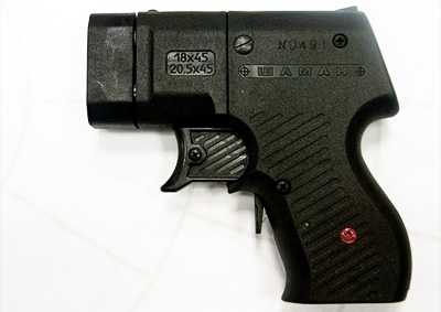 Ну, а лидером рейтинга стала также отечественная разработка — пистолет травматического действия «Шаман», который еще называют пистолетом-пушкой.