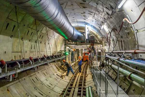В конце тоннеля сейчас работает тоннелепроходческий щит Herrenknecht, который «прокапывает» около 20 метров в день.