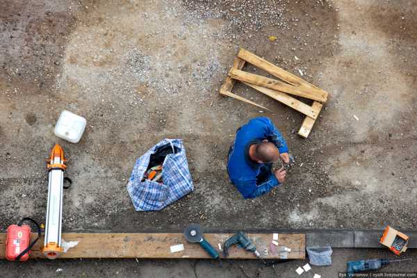 Сотня журналистов привлекла внимание рабочих и кое-где работа остановилась.