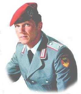Рассмотрим основной вид униформы Сухопутных Войск Бундесвера, а именно служебную униформу и знаки различия на ней. Она представляет собой однобортный открытый китель серого цвета и темные брюки. Цвет кителя чисто серый приятного оттенка, ничего общего не имеющий с зеленовато-серым цветом мундира Вермахта. В качестве головного убора в настоящее время повсеместно используется цветной берет, который в ряде случаев носится не только со служебной униформой, но и с полевой униформой. Цвет берета определяется родом войск или служб части, в которой проходит службу военнослужащий. На левой стороне берета, ближе ко лбу крепится эмблема также указывающая на род войск или службу части, в которой военослужащий проходит службу. Однако в некоторых случаях эмблема указывает не на род войск или служб, а на конкретную воинскую часть. Ниже показаны эти беретные эмблемы. Фон эмблем указывает на цвет берета, который может носиться с данной эмблемой.