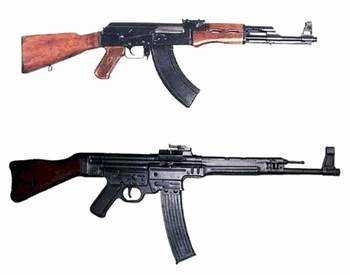 Как утверждают военные специалисты, немецкая штурмовая винтовка STG 44 и АК очень похожи. В 1945 году американцами был занят город Зюль. Именно в этом городе располагалась фирма Х. Шмайссера. Убедившись, что коммерсант не является нацистом, американцы не стали его задерживать, а к STG 44 не проявили совершенно никакого интереса. Солдаты США были убеждены, что их автоматические карабины М1 лучше немецких винтовок.