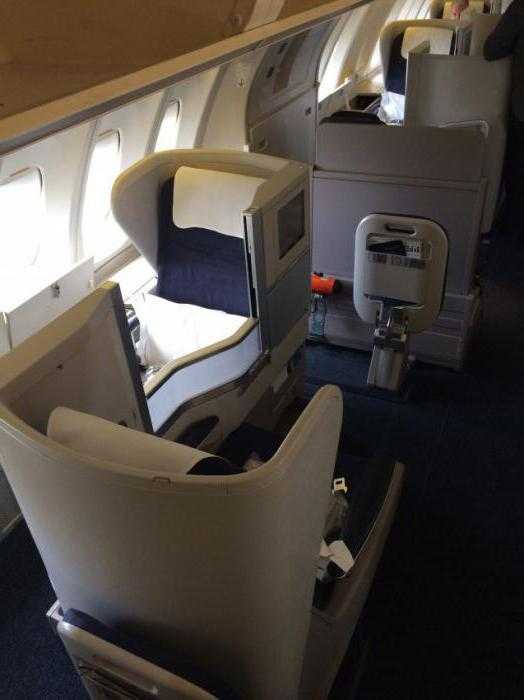 Конструкция борта предполагает три конфигурации планировки салона: на один, два или три класса. В первой ситуации авиалайнер перевозит 660 человек. Модели на два класса – наиболее распространенные. Такие серии лайнеров 747 400 числятся на балансе флотилии авиалиний «Россия»