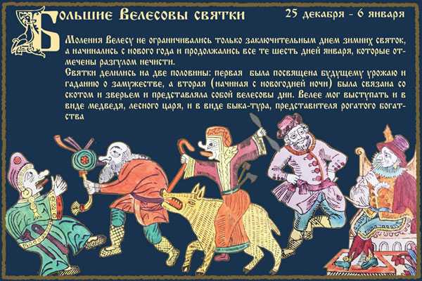 Великий Велесов день знаменует собой середину зимы, некий рубеж. В этот праздник славили Батюшку и проводили игровые обряды шуточного боя Марены с Велесом, как символ скорого окончания холода, его отступления вместе с Марой. Также в этот день ставили защиту скоту и наносили чиры Велеса на все ворота в подворье, славили и приносили требы Скотьему Богу, просили здоровья коровам, свиньям и другим кормильцам семьи.