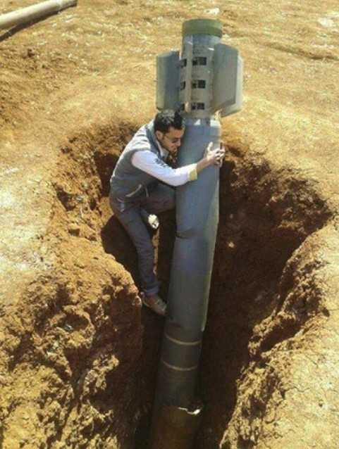 Дело в том что минимальная дальность стрельбы РСЗО СМЕРЧ составляет двадцать километров. Что бы выстрелить на меньшую дистанцию на нос ракеты надевают тазик, который создаёт дополнительное сопротивление и уменьшает дальность стрельбы. На фотографиях эти тазики видны на скелетах боевых частей.
