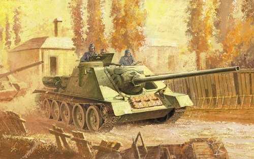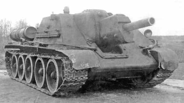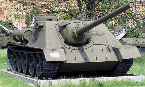 Истребитель танков создан на базе танка «Т-34-85» и принят на вооружение в 1944 г. САУ относилась к типу закрытых самоходных установок. На крыше рубки над местом командира устанавливалась неподвижная командирская башенка с пятью смотровыми щелями для кругового обзора. Вентиляция боевого отделения осуществлялась при помощи двух вентиляторов, установленных в крыше рубки. Всего в период войны было выпущено 2320 машин. ТТХ САУ: длина – 9,5 м; ширина – 3 м; высота – 2,2 м; клиренс – 400 мм; масса – 31,6 т; бронирование – 20-110 мм; тип двигателя — V-образный 12 цилиндровый дизель «В-2-34»; мощность двигателя – 520 л.с; удельная мощность — 16,4 л.с/т; скорость передвижения по шоссе – 50 км/ч; запас хода – 310 км; вооружение – 100-мм пушка «Д-10С»; дальность стрельбы прямой наводкой – 4,6 км, максимальная – 15,4 км; боезапас – 33 выстрела; бронепробиваемость на дистанции 1000 м – 135 мм; экипаж – 4 человека.