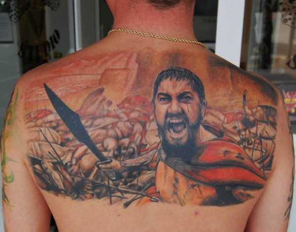 Тату 300 спартанцев может говорить о том, что человек является поклонником одноименного фильма и стремится походить на древних воинов.