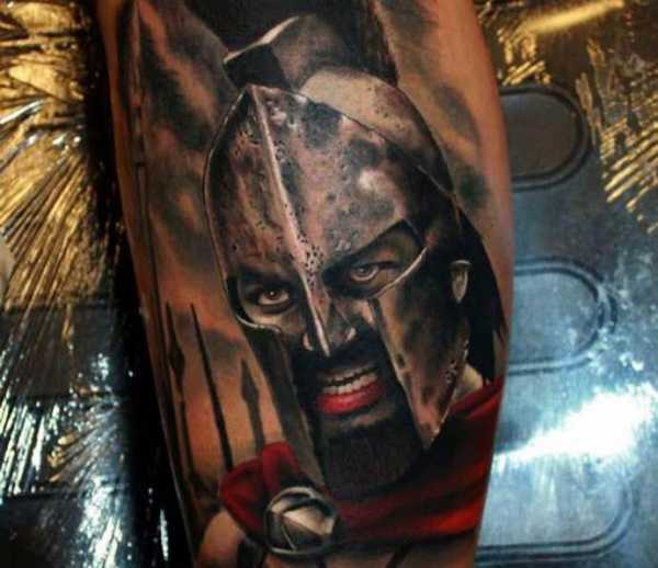 Стиль реализм больше всего подойдет для нанесения тату со спартанцем, эскизы которого обычно отличаются детализацией, эмоциональностью и насыщенными цветами. Очень эффектно выглядят масштабные композиции на руке, на ногах, на предплечье или на плече. Обратите внимание, что плечо – самая безболезненная зона для нанесения, поэтому ее стоит выбирать новичкам, планирующим впервые посетить тату-салон.