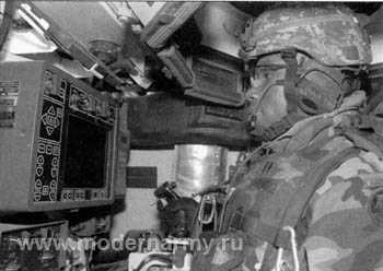 В десантном отделении устроены крепления для разнообразных солдатских аксессуаров, от личного оружия до туалетной бумаги. В задней части десантного отделения оставлено свободное пространство под хранение ПТУР «Джавелин», четырех очков ночного видения, запасных стволов к пулемету М240В, сухих пайков и т.п. В правом верхней углу рампы установлен обогреватель, рядом с ним – три фильтра системы защиты от оружия массового поражения. В задней части десантного отделения складируется масса других полезных предметов, как-то запасные аккумуляторные батареи, портативная радиостанция, тепловизор. Много чего помещается внутри транспортного отделения, но его объем все-таки совершенно недостаточен для размещения всех предметов, острую необходимость в который испытывает любой цивилизованный солдат, ярким представителем которого служит воин армии США. На броне приходится возить часть личного имущества пехотинцев, запасной боекомплект, саперный инструмент, треножный станок для пулемета М240В, треножный станок для 12,7-мм пулемета или для 40-мм автоматического гранатомета, приспособления для чистки оружия, канистры под воду и топливо, маскировочную сеть, полевой телефон. Большинство из вышеперечисленных вещей размещается в специальных багажных корзинах по бортам корпуса.
