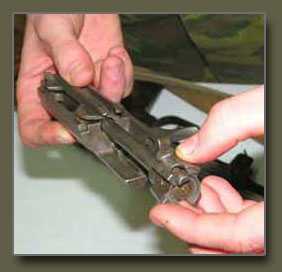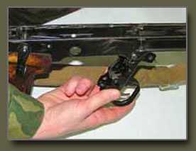 При выстреле последним патроном, когда затвор отойдет назад, подаватель магазина поднимает вверх останов затвора, затвор упирается в него и затворная рама останавливается в заднем положении. Это является сигналом тому, что надо снова зарядить винтовку.
