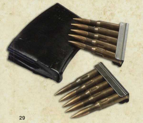 29. ΠΠ°Π³Π°Π·ΠΈΠ½ Π²ΠΈΠ½ΡΠΎΠ²ΠΊΠΈ Π‘ΠΠ’ (Π²ΠΈΠ΄Π΅Π½ ΡΡΡΠΏΠ΅Π½ΡΠ°ΡΡΠΉ ΠΏΠΎΠ΄Π°Π²Π°ΡΠ΅Π»Ρ) ΠΈ ΠΎΠ±ΠΎΠΉΠΌΡ (Ρ ΡΡΠ΅Π±Π½ΡΠΌΠΈ 7,62-ΠΌΠΌ Π²ΠΈΠ½ΡΠΎΠ²ΠΎΡΠ½ΡΠΌΠΈ ΠΏΠ°ΡΡΠΎΠ½Π°ΠΌΠΈ)