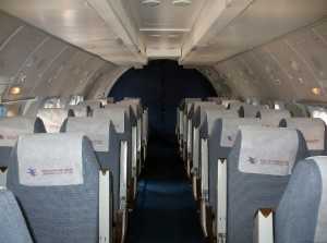Салон самолета дополнительно шумоизолирован, оборудован туалетом, кухней и багажным отсеком. Пассажирские кресла расположены в пропорции 2+2 в ряд.