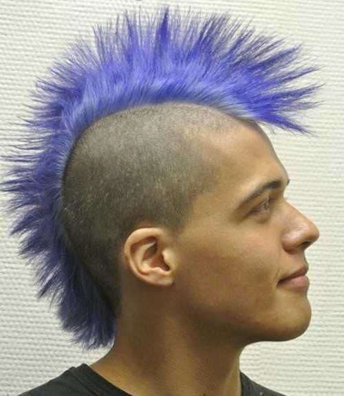 Макушечную полоску можно разделить на несколько прядей и из каждой с помощью геля и лака сформировать шип. Это удобнее делать с помощником. Шипы часто красят в яркие цвета