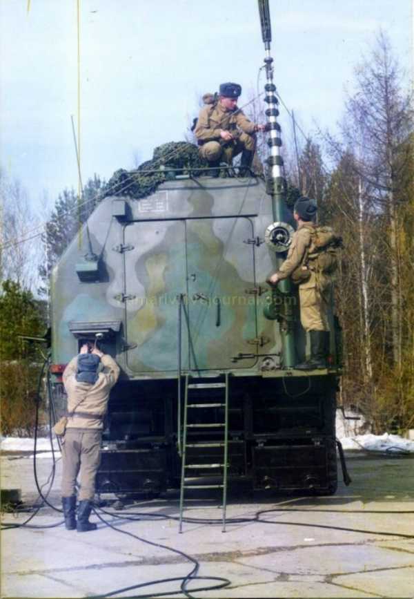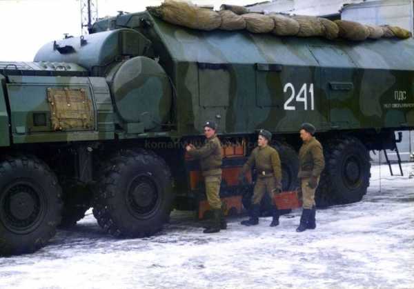 Выкладываю имеющиеся у меня фото техники комплекса 15П158.1, называемого «Тополь с точкой». Это первый, упрощенный вариант комплекса. Технически он занимает промежуточное положение между «Пионером» (15П653) и «Тополем» (15П158).«Тополь с точкой» использовал ту же ракету, что и «Тополь», но не имел полного комплекта средств подготовки к пуску на пусковой установке, а использовал машину подготовки и пуска из состава комплекса «Пионер». Соответственно, старт мог производиться с заранее подготовленных позиций на маршруте боевого патрулирования, рассредоточение полка производилось только подивизионно.