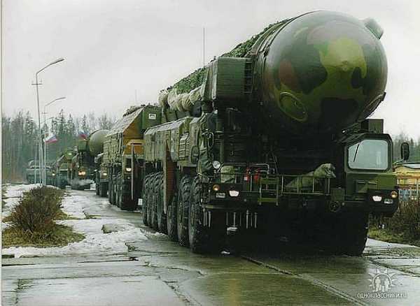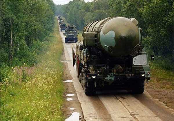Колонна дивизиона. Хорошо видно характерное отличие пусковой установки «Тополя с точкой» — правая кабина отодвинута назад, как на «Пионере».