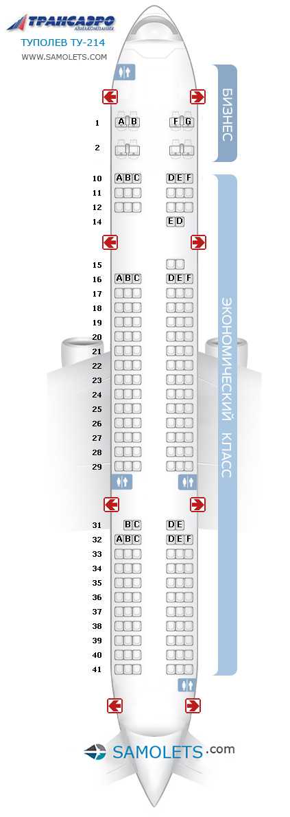 Схема салона Ту-214 — Трансаэро. Лучшие места в самолете