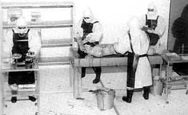 Вы не ослышались, это была очень популярная среди специалистов отряда процедура, когда на живом человеке врачи оттачивали свое мастерство, вскрывая тела и вырезая различные органы. Человеку вводили местный наркоз, который, понятное дело, быстро прекращал действовать, вскрывали живот и поочередно начинали вырезать органы, отправляя их в другие лаборатории для последующих экспериментов. В итоге от подопытного оставалась одна оболочка.
