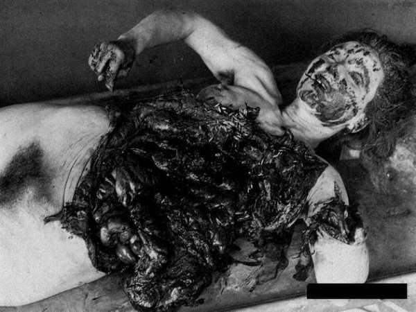 Самыми «везунчиками» были те, на ком испытывали газы, поскольку смерть их была самой быстрой. Согласно отчетам работников отряда 731, после отравления цианистым водородом у людей становились очень красными лица, а после воздействия ипритом – тело невозможно было опознать. Но вообще-то, по словам одного эксперта, организм человека не выносливее организма голубя, поскольку и те и другие погибают от одинаковой дозы газа.