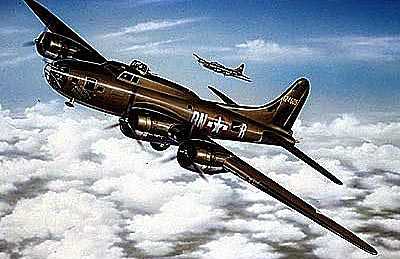 В-17 «Летающая крепость» в полете Всего к концу марта 1940 года построили 39 бомбардировщиков В-17В. Затем в цехах их сменили усовершенствованные самолеты второй мировой войны В-17С («модель 299Н»). Улучшая аэродинамику, на нем убрали блистеры огневых точек, а пеленгационную антенну упрятали в каплевидный обтекатель. Усили вооружение, заменив все пулеметы, кроме носового, крупнокалиберными. Из всех «Крепостей» модификация С с моторами R-1820-65 была самой скоростной. Эти машины строились не только для американской армии, но и для экспорта в Великобританию. Всего до ноября 1940 года выпустили 38 В-17С, из которых 18 остались в США, а 20 в марте 1941 года отправили в Англию. Королевские ВВС присвоили им обозначение «Фортресс I». Экспортные машины («модель 299Т») несколько отличались от американских самолетов В-17С. В частности, на них не было высокоточных бомбовых прицелов «Норден», объявленных секретными военными бомбардировщиками второй мировой войны и не подлежащими продаже, зато их топливные баки протектировались слоем специальной набухающей в бензине резины, затягивающей пулевые пробоины. Освоение новой техники у англичан пошло «со скрипом». Досаждали мелкие поломки, высока была аварийность — довольно быстро разбили четыре машины. Первый вылет на бомбежку три английские «Крепости» совершили в июле — целью был Вильгельмсхафен — немецкая военно-морская база. Как бомбардировщики они применялись мало, поскольку в условиях сильной ПВО немцев их оборонительное вооружение и бронезащита были недостаточны. Например, из трех «Крепостей», отправившихся бомбить Осло, не вернулась ни одна — все сбили немецкие истребители. Четыре самолета потом отправили в Африку — они до мая 1942 года по ночам атаковали Тобрук и Бенгази, а остальные использовали 206-я и 220-я эскадрильи береговой охраны для дальнего патрулирования над морем. Одна машина в июле 1942 года попала в Индию, где опять перешла в руки американцев. |