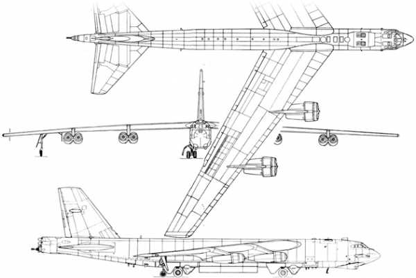 Рабочая высота полета B-52 была на треть, а крейсерская скорость примерно вдвое выше, чем у поршневого B-29. Это существенно повышало выживаемость самолета. С этой же целью он был снабжен ракетами – ложными целями ADM-20 «Qyelle» и вооружен УР «North American» AGM-28 «Hound Dog», предназначенными для огневого подавления ЗРК с последующим поражением стратегических целей ядерными бомбами. Для ухода на малые высоты полета потребовалось внести 120 изменений для упрочения конструкции. Однако и при этом самолет не может считаться маловысотным. Несмотря на высокую (более 500 кг/м2 при массе 190 т) удельную нагрузку на крыло, большое удлинение крыла и сравнительно малая жесткость конструкции приводят к тому, что машина сильно реагирует на порывы ветра.