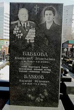 Могила Бабкова на Даниловском кладбище- ↑ Коллектив авторов. История командного факультета Военно-Воздушной академии имени Ю. А. Гагарина / В.Е. Зенков. — Москва: ЗАО СП «Контакт РЛ», 2007 год. — С. 245. — 368 с. — ISBN 5-902908-02-7.