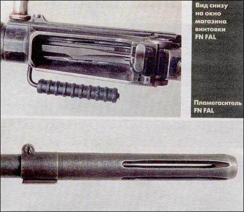 Первые модификации винтовки FN FAL и некоторые другие ее варианты оснащались дульным тормозом-пламегасителем. Его внешний диаметр позволял использовать винтовочные гранаты, соответствующие стандартам НАТО. Кроме того, на стволе имелись крепления для штык-ножа.