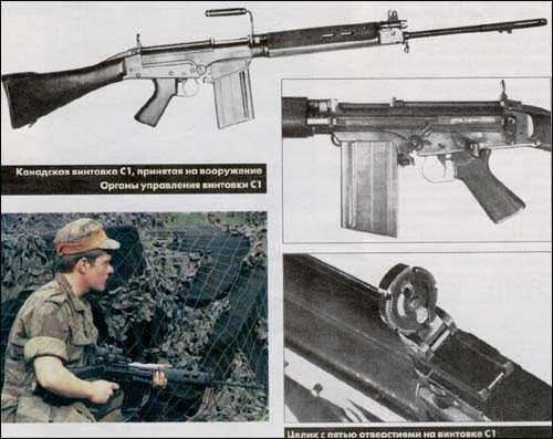 - С1. Винтовка разработана канадскими оружейниками на основе конструкции FN FAL. От бельгийской стрелковой единицы отличается измененными прикладом и прицельными приспособлениями.