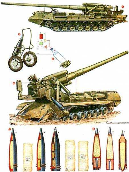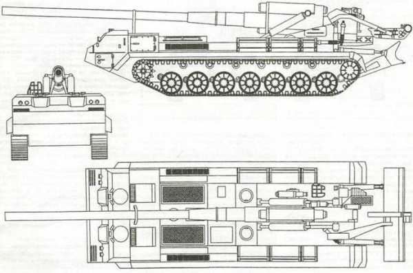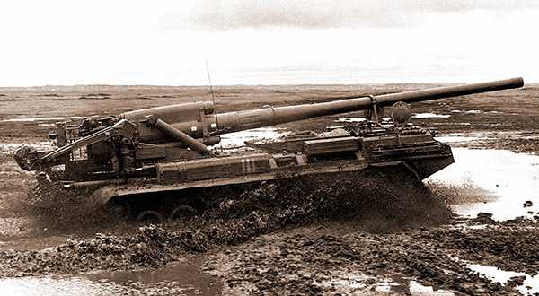 - Инженеры Кировского завода (Ленинград) считали, что лучше всего взять пушку калибра 203 мм и установить ее в рубке на шасси танка Т-64 (новейшей на тот момент машины). Предполагалось оснастить пушку откидным сошником, который бы существенно снижал отдачу и повышал точность стрельбы.