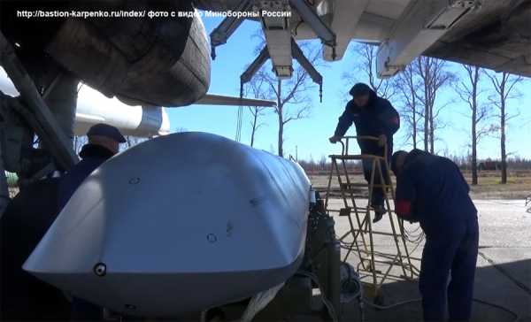 - Загрузка крылатой ракеты X-101 в бомбардировщик-ракетоносец