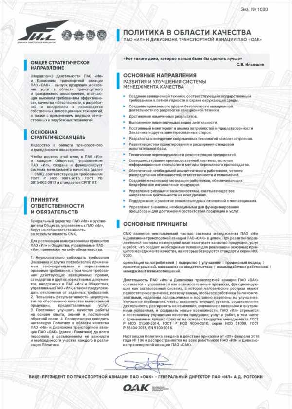 Политика в области качества ПАО «Ил» и Дивизиона транспортной авиации ПАО «ОАК»