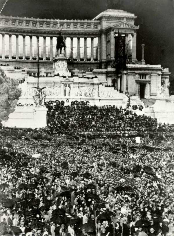 Толпа на площади Венеции в Риме во время выступления Муссолини по поводу военной мобилизации.1935.