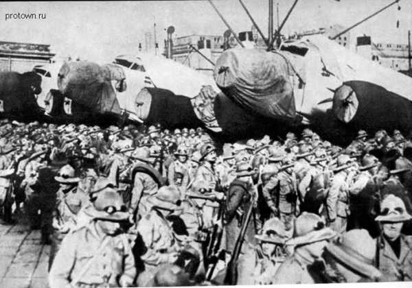 Погрузка на транспортное судно итальянской пехоты и самолётов, отправляемых в африку для войны в Эфиопии. 1934 г.