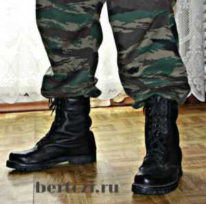 Высокая обувь для военных прикрывает основную часть берцовой области ноги. Она спасает ее от вывихов, переломов, травм и других повреждений, которые могут возникнуть в армии.