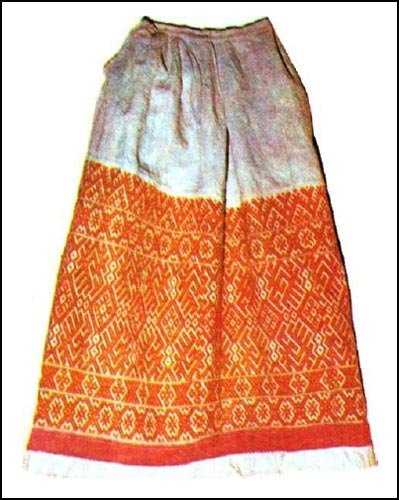 Удивительно красива эта юбка, почти сплошь покрытая тканым узором. Приглядевшись к нему, можно увидеть, как мерно шествуют вокруг солнечных ромбов олени с ветвистыми рогами. Сюжет выбран не случайно. Такая юбка отделилась от рубахи покосницы, подол которой щедро украшали браным ткачеством. На первый выгон скота молодые женщины надевали по две, а то и три подольницы, показывая солнышку и подружкам свое богатство.