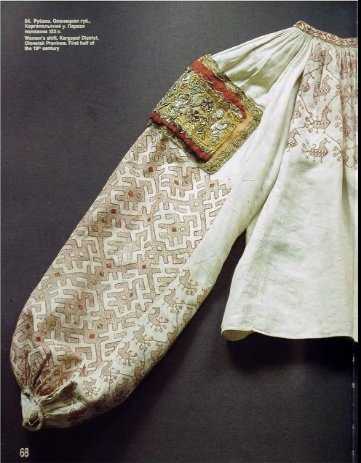 В старину рубаху шили из льняного или конопляного холста, пропуская цельное полотнище от ворота до подола. Отсюда и название — проходчица, бытовавшее в Вологодской губернии. Но уже в прошлом столетии такая одежда встречается лишь как свадебная и похоронная, в обычное же время носят рубаху из двух частей. Верхнюю называли на Севере рукава и шили из более тонкой, даже покупной материи, нижнюю — стан — из обычной домотканины.