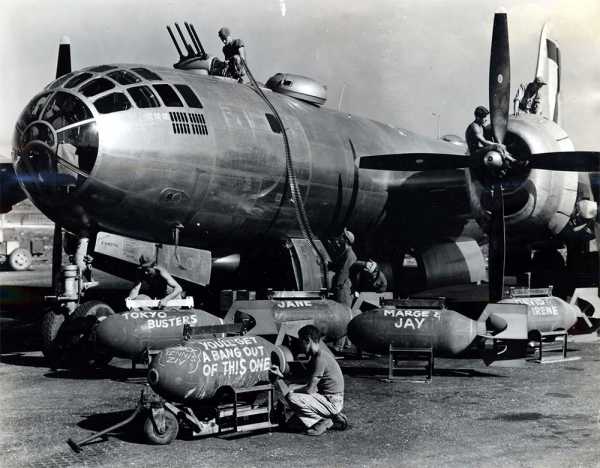 Прообразом современных стратегических бомбардировщиков являются дальние бомбардировщики времен Второй мировой войны. Американцы и англичане массировано и весьма эффективно использовали тяжелые самолеты (B-17, B-24, Ланкастер и B-29) для уничтожения промышленного потенциала Германии и превращения немецких городов в пылающие руины.
