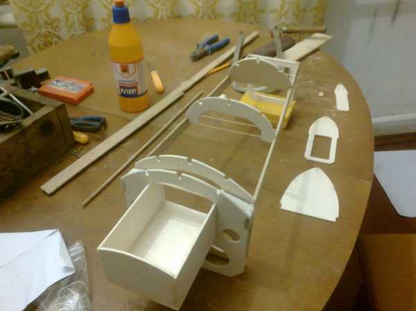 Титаном склеил боковые и нижнюю детали обшивки фюзеляжа, вклеил рамки для сервомашинок.