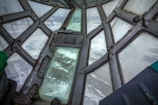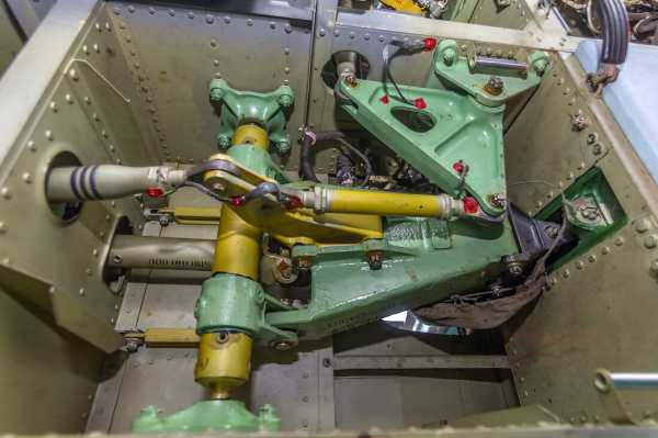 31. Место пилотов. Над приборной доской висит радиолокатор переднего обзора КП-3А, который может перемещаться вправо-влево. С его помощью пилоты контролируют воздушную обстановку.