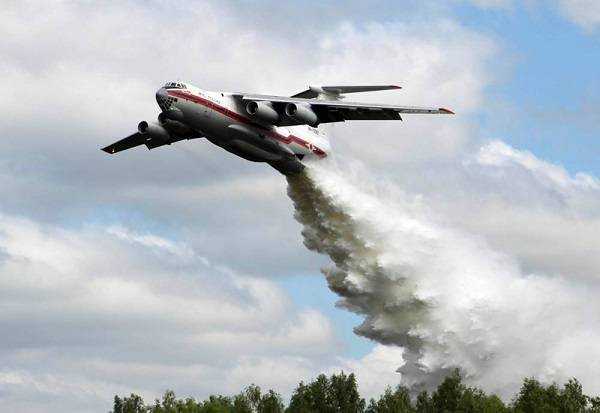 Ил-76 с установленным в грузовом отсеке выливным устройством гасит лесной пожар. Фото с сайта http://www.ilyushin.org
